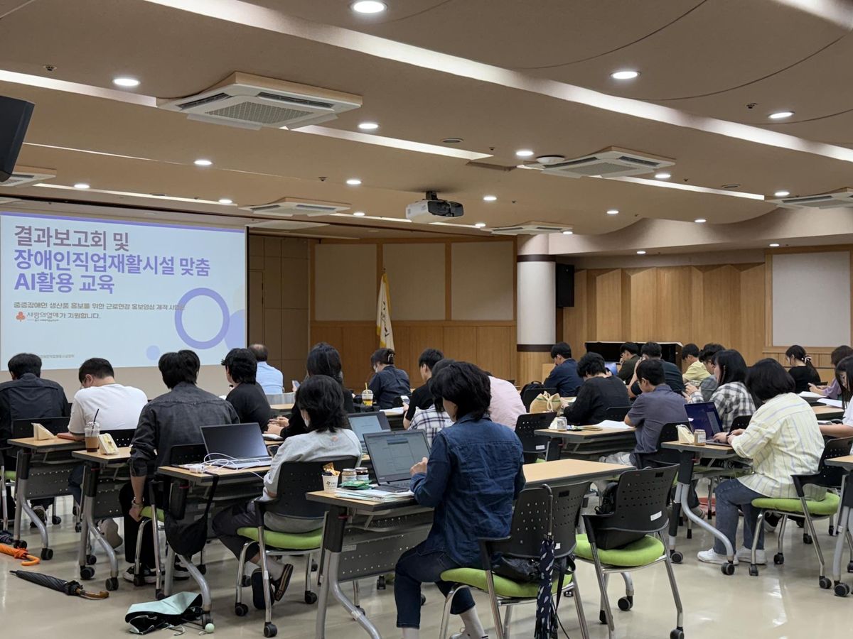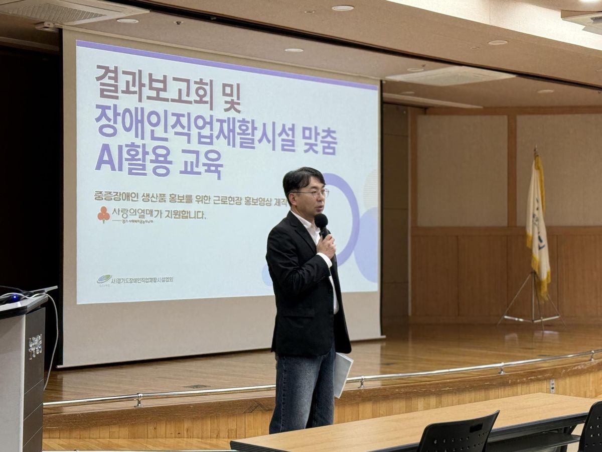[홍보영상제작사업] 결과보고회 및 장애인직업재활시설 맞춤 ai활용 교육 경직협 교육 0 358 01.08 16:34 장애인직업재활시설 근로현장 홍보영상 제작사업 결과보고회가 9월 24일(수) 오후 2시,경기도장애인복지종합지원센터 누림 대회의실에서장애인직업재활시설 맞춤 AI 활용 교육과 결과보고회가 진행되었습니다!경기 사회복지공동모금회의 지원으로 홍보영상 제작사업을 추진하였으며,그 결과를 공유하는 보고회와 장애인직업재활시설 맞춤 AI 활용 교육을 함께 진행했습니다.참여해주신 모든 분들께 감사드립니다!