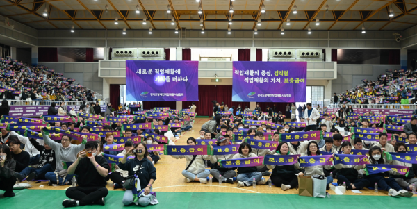 지난달 25일, 2024년 장애인직업재활의 날 기념식 및 어울림 한마당 행사 에서 경직협 응원송을 다함께 부르는 모습입니다.
