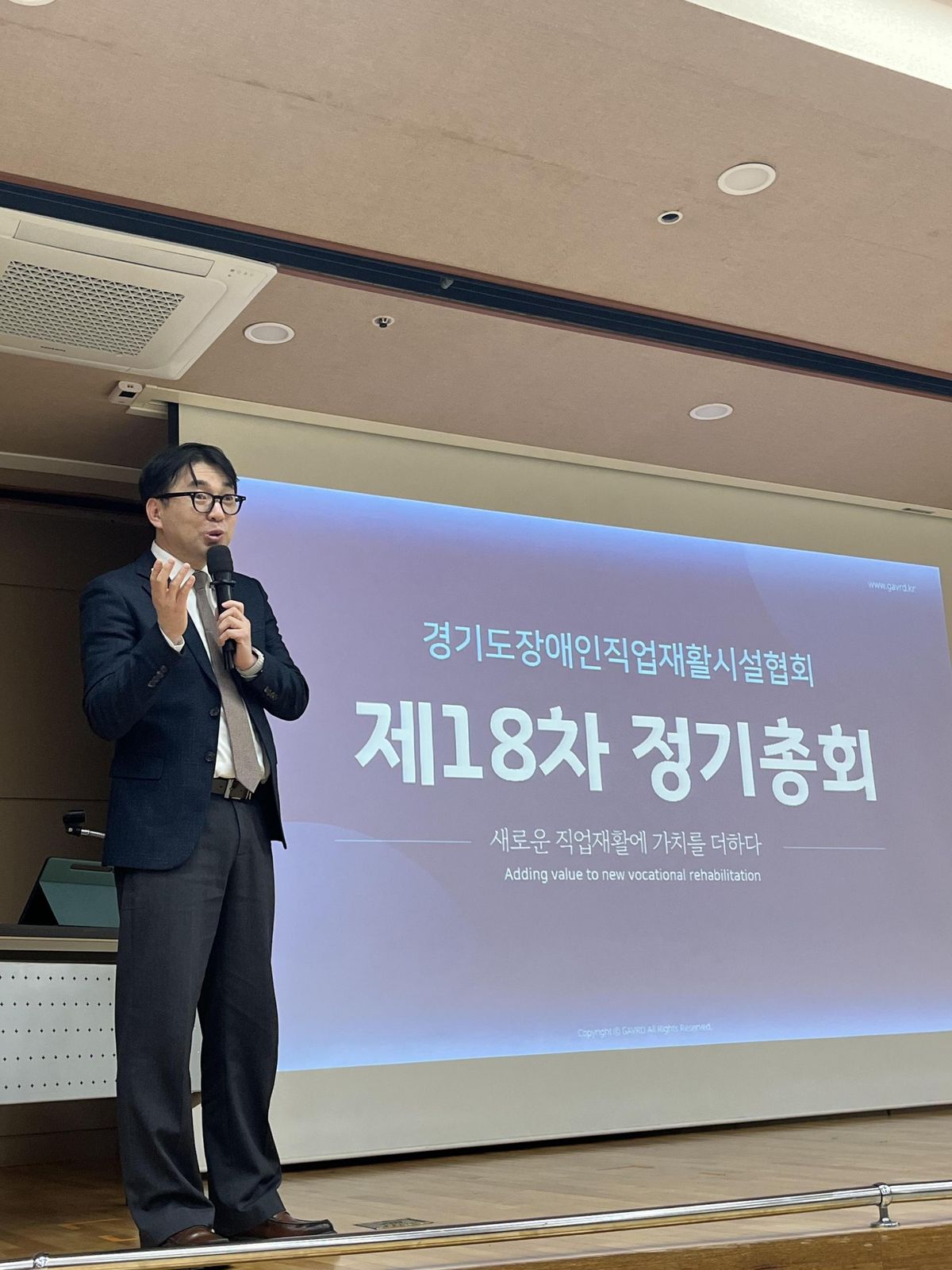 지난 2월 13일(목) 경기도장애인직업재활시설협회 2025년 제 18차 정기총회가 개최되었습니다. 역대 많은 시설장님들이 참석한 가운데 24년 사업결과 및 25년 사업예산, 감사선출, 제규정 개정등 안건에 대해 논의 하였습니다.