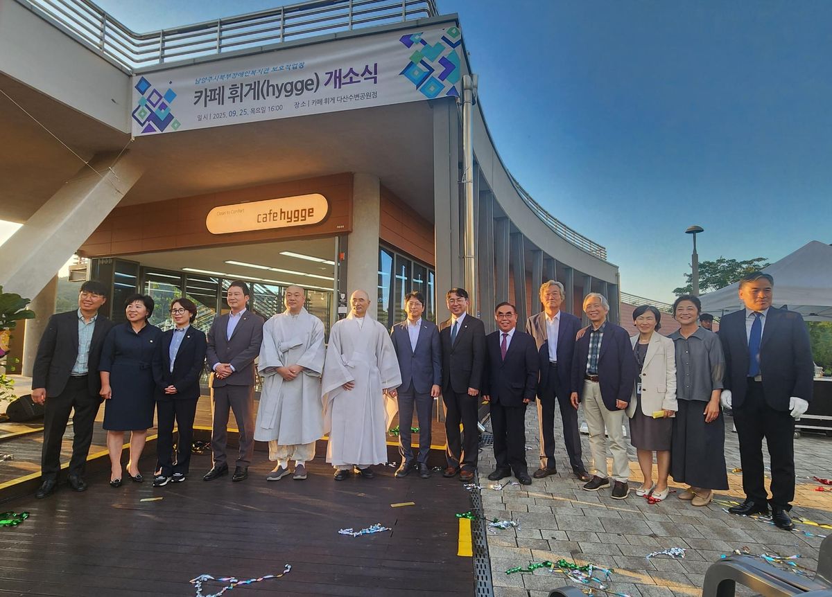 남양주시북부장애인복지관 보호작업장 「카페 휘게 다산수변공원점」 개소식 참석 경직협 0 210 01.08 16:06 2025년 9월 25일(목) 오후 4시 30분,남양주시 다산수변공원 내 「카페 휘게 다산수변공원점」 개소식이 열렸습니다.이번 행사에 협회 회장님께서 참석하시어 개소를 축하며, 이번 개소식을 통해 새로운 공간의 출발을 함께 축하하며 의미 있는 자리를 가졌습니다.앞으로 「카페 휘게」가 많은 분들에게 사랑받는 공간으로 자리잡기를 기대합니다.