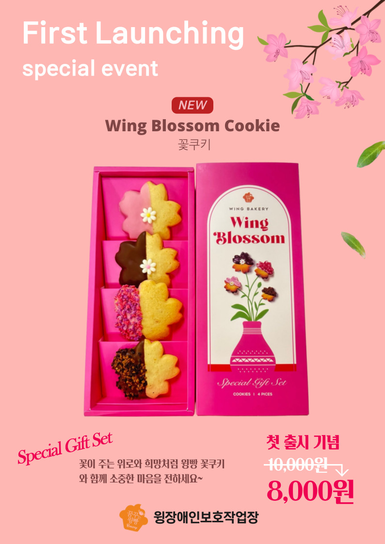 윙장애인보호작업장에서는 **신제품 ‘Wimg Blossom 꽃쿠키’**를 출시하였습니다.