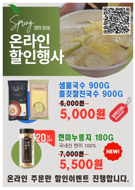 샘물자리에서 생산하는 국수와 누룽지 세부내용을 확인하시려면 상단 그린박스를 클릭하세요~!!