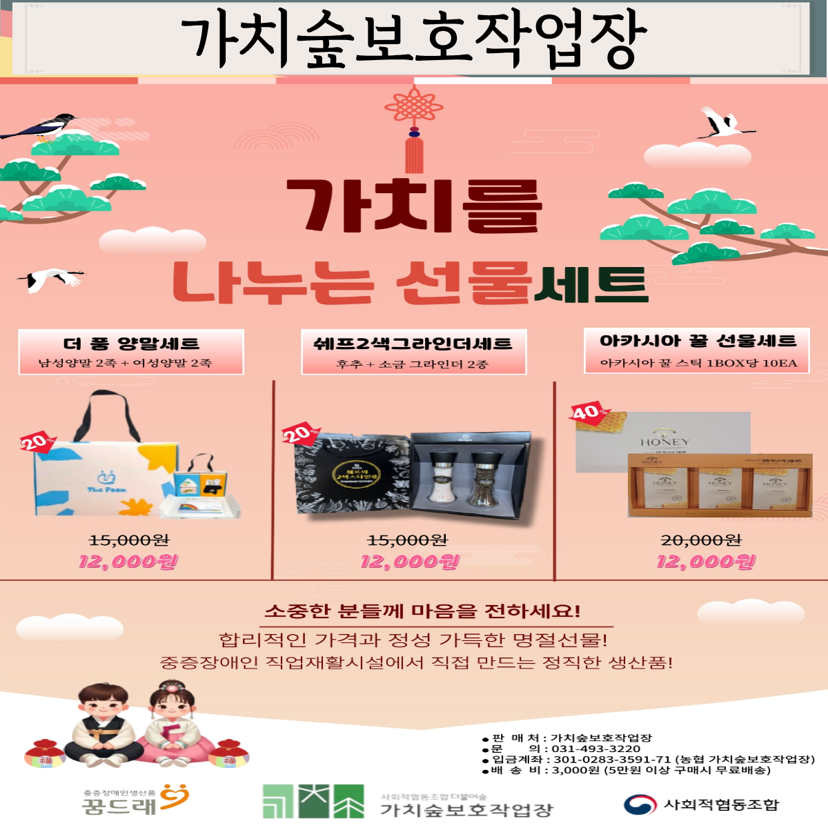 2026년 설 명절 선물세트 판매(3탄) 경직협 0 116 02.06 10:57 설 명절이 가까워질수록마음을 전할 선물도 더 특별해지고 싶어지죠.경기도장애인직업재활시설에서 준비한2026년 설 명절 선물세트는일상에 향기와 달콤함을 더하고선물에 ‘가치’까지 담아드립니다